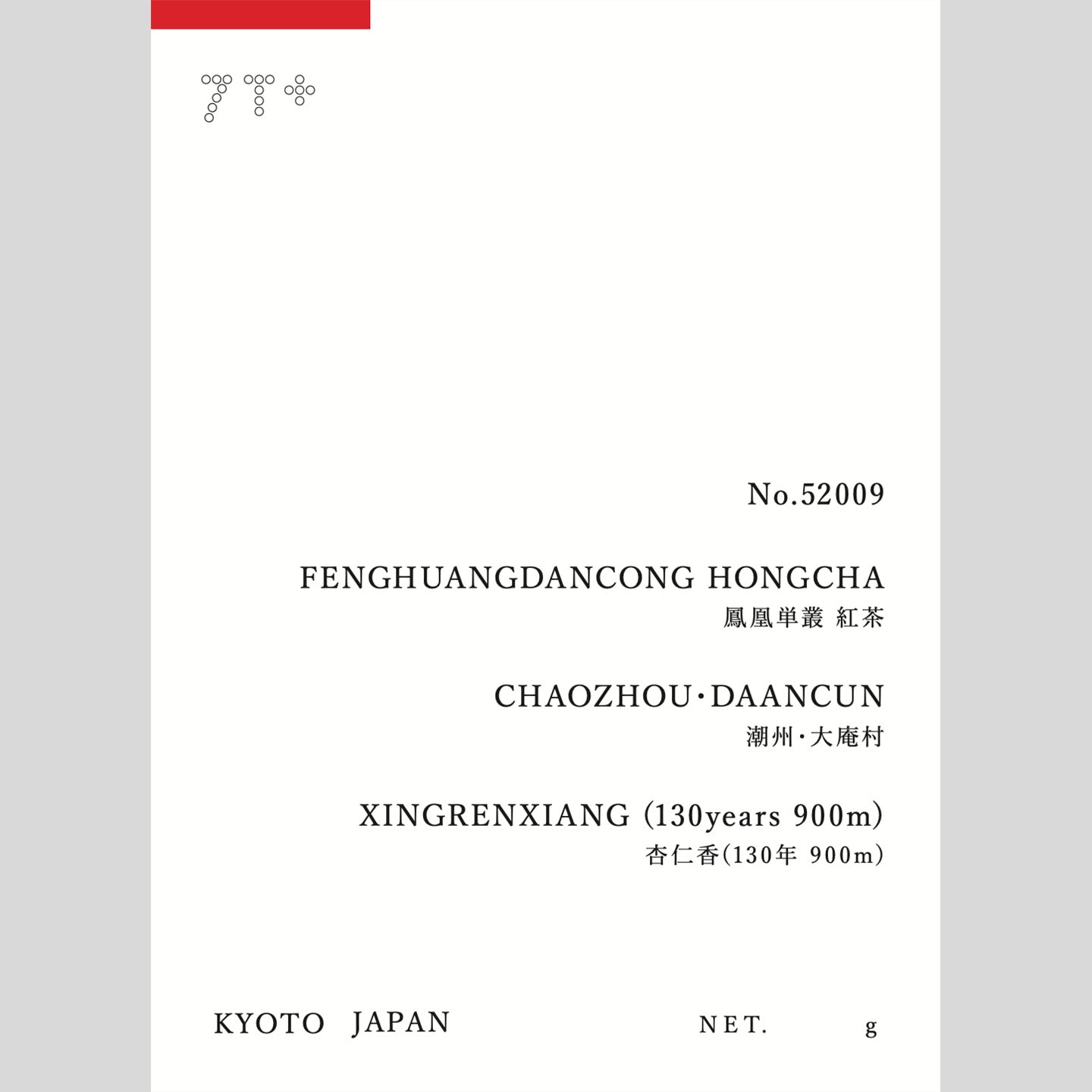 Despite the name, this is not Oolong but black tea made from Phoenix Dancong material. Originating from Da'an Village, where many old trees remain, this lot comes from around 130-year-old trees. The aroma is not artificial almond flavor, but a more natural bittersweet kernel-like nuance with layered delicacy. Texture is exceptionally smooth with low astringency, balancing strength and calmness. A quietly luxurious tea that sharpens the senses with each sip.