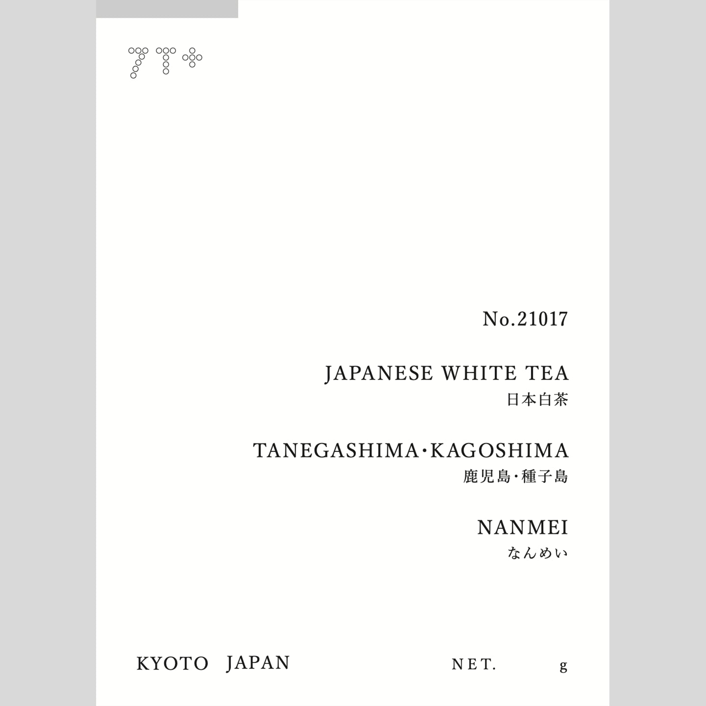 バランスの取れた味わいが特長で、病害虫複合抵抗性を持つ品種「なんめい」。有機栽培や無農薬栽培など輸出向け栽培にも適した高品質早生品種です。その「なんめい」を種子島で「不炒不揉」=加熱せず揉まずに仕上げた国産の白茶。白茶は透明感と自然感に満ちた〈静寂のお茶〉で、美容の文脈でも近年人気ですが日本ではまだ認知途上。国産白茶の多くは本場中国の白茶に比べると風味は控えめで、より淡く儚い味わい。そんな中こちらの茶液には密度の高い飲みごたえがあり、穏やかな温もりと余韻が長く続きます。甘みを含んだおおらかな風味が料理を邪魔せずそっと寄り添い、食中にも最適。急須でも蓋碗でもマグカップでも、タップリいただきたくなる南の島の白茶です。